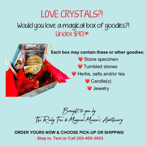 A mystery box will be available each month, while supplies last, with a bunch of metaphysical goodies that will Surely make you smile!
